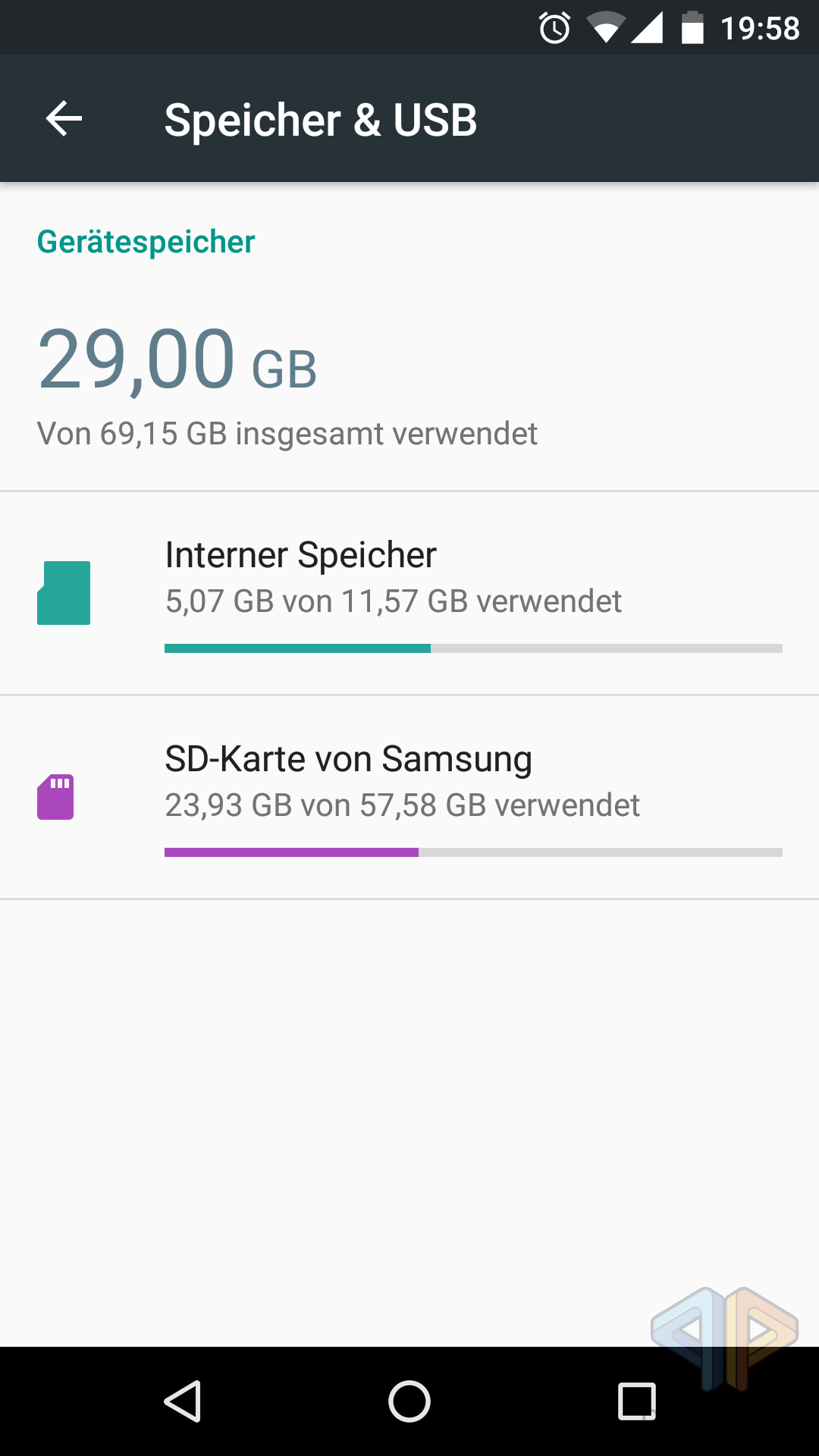 Ist dies einmal erledigt, wird der gesamte interne Speicher des Smartphones für Dateimanager blockiert. Dieser steht nun ausschliesslich für Apps, App-Daten, Cache und weitere Systemdaten zur Verfügung. Durch diese radikale Umschichtung des Speichers ist man nun auch nicht mehr darauf angewiesen, dass Apps die SD-Karte als Ablageort für Daten unterstützen, da diese nur noch einen Medienspeicher zu sehen bekommen, unabhängig davon, ob dieser intern oder auf der externen microSD-Karte liegt.