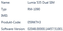 Die Updateseite von Microsoft gibt da "Lumia 535 Dual SIM Country variant Denim 8.10.14226.359 02055.00000.14511.22004" aus.