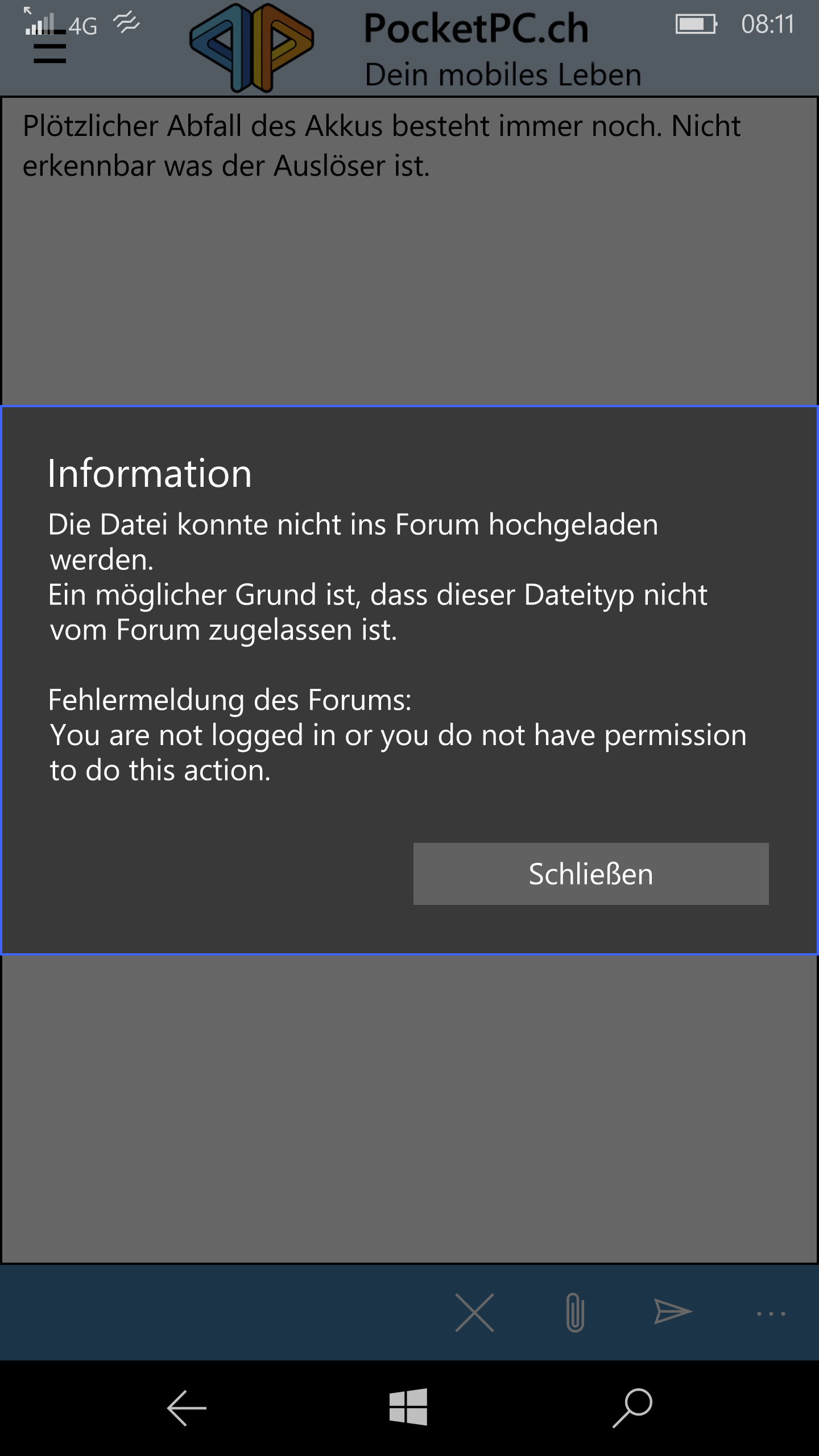 Das Netz fiel zwischen Appstart und Hochladen aus? Alo hats da zwischen Wlan und Datennetz gewechselt? Dann läuft das Cookie ab zum speichern des Logins.