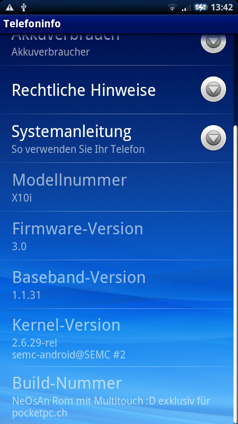 Das ist ein Fake der hatt einfach nur die Android Version editiert. Seit wann steht bei 2.2 costumfroyo.com bei Build und ausserdem ist der 2.6.29 Kernel schon bei 1.6 von SE drauf gewesen Froyo hatt einen neueren und wenn das wirklich Froyo sein soll wieso ist da das blaue SE Theme. Alles fake nur editiert damit er etwas fame kriegt.