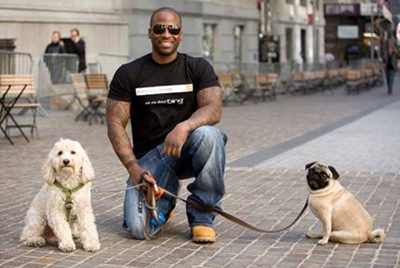 Hundebetreuer mit Bing shirts und die Hunde mit Bing Logo