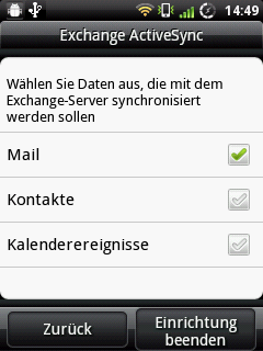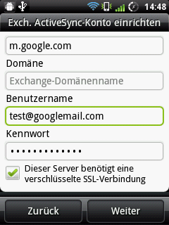 Schritt2: Einrichten des Googlemail Accounts über einen Exchange Server