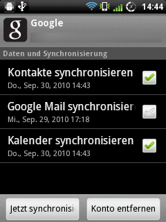 - Den Haken bei "Google Mail synchronisieren" entfernen