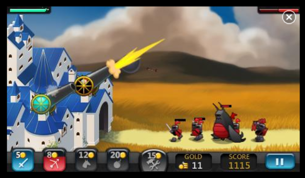 Das erste Spiel heisst Castles & Cannons und ist ein Strategiespiel. AUfgabe ist es, deine Burg vor Angreifern zu Verteidigen und auch selbst Anzugreifen.
