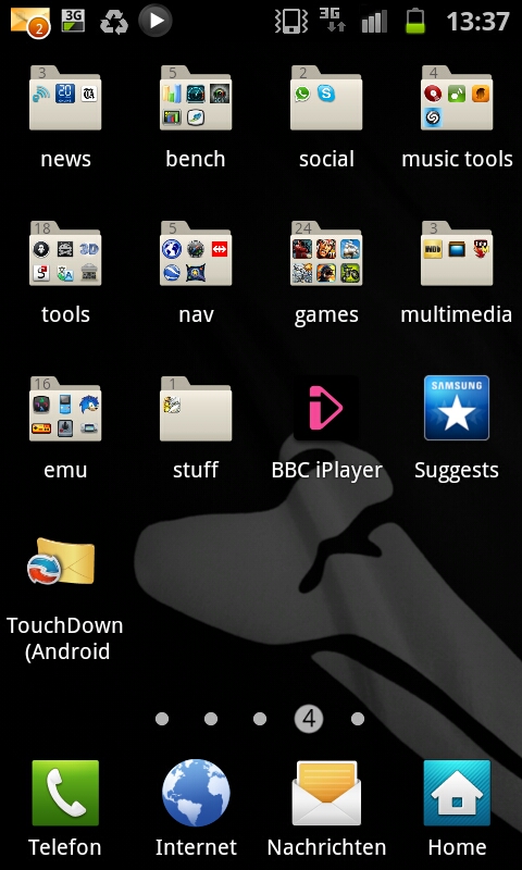 Wollte mal sehen wie denn die SGS2 der Benutzer hier aussehen ;) Ich habe bisher nur die Software geändert und ne Tasche besorgt. Evtl. hat ja schon wer sein Gehäuse verschönert(Farbe, Aufkleber, Aplikationen etc.). Zeigt einfach mal was Ihr aus eurem SGS2 so gemacht habt. Im Anhang befinden sich ein paar Bilder der Menüs und der Tasche die ich benutze.