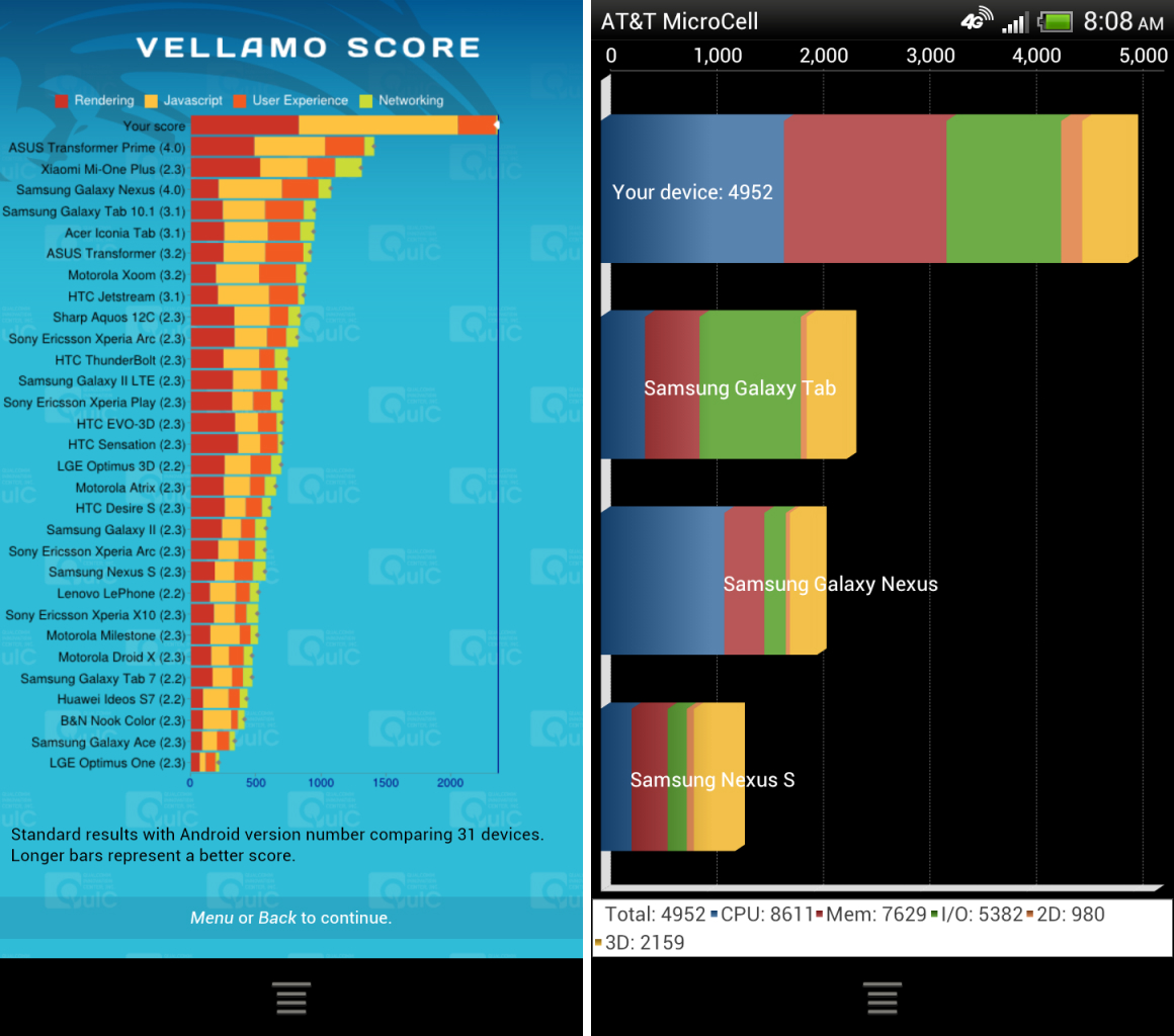 Es scheint zunächst glasklar das der DualCore Krait den T3 des OneX abzieht. Aber nur wenn man außer der Total Score nichts weiter berücksichtigt.