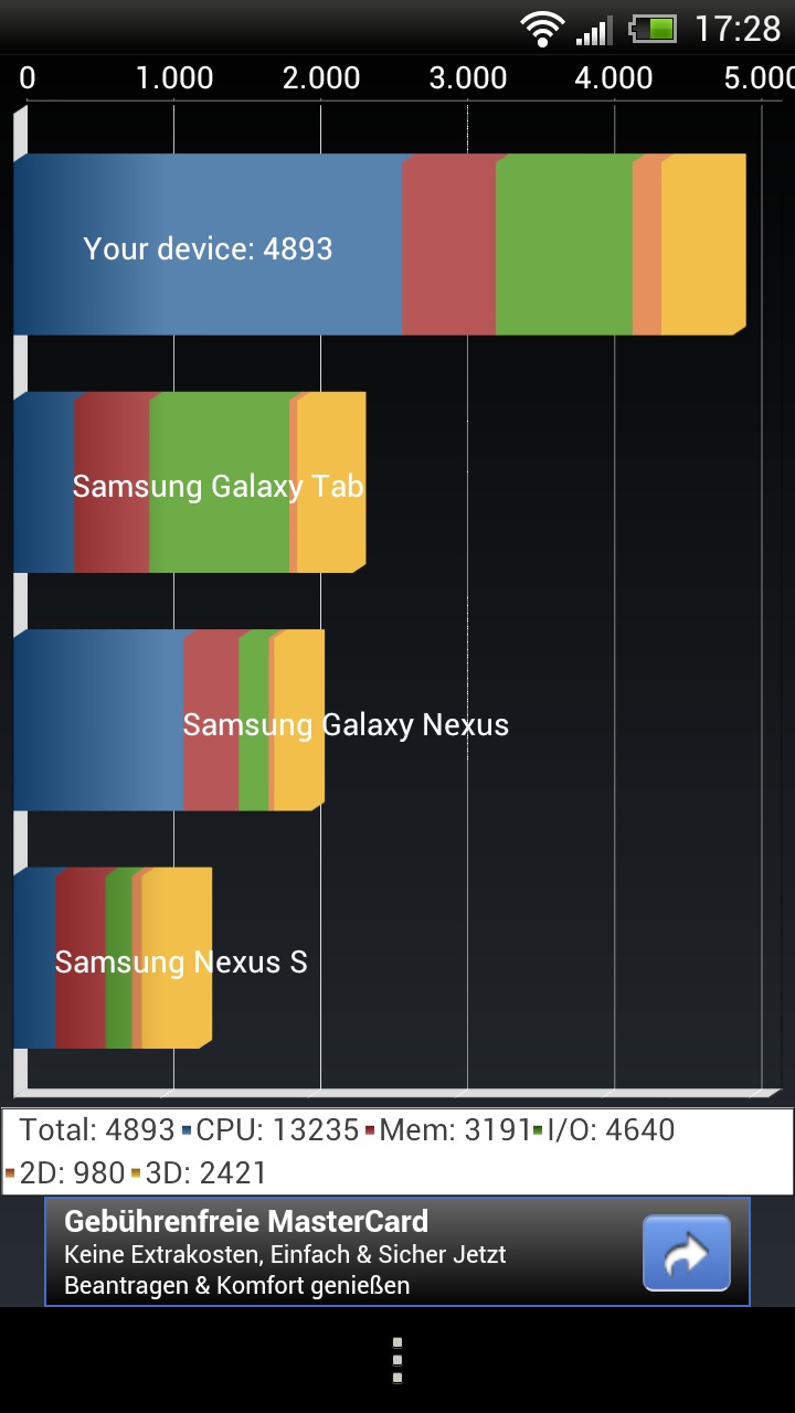 Übrigens erreicht das One X bei manchen Leuten 5100-5200 Punkten im Quadrant...