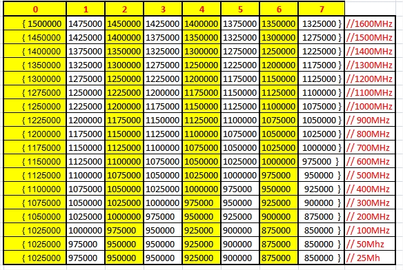 Hier eine Tabelle der einzelnen "ASV_TABLE" im "S91profile" Script zum Einstellen der CPU-Spannung: