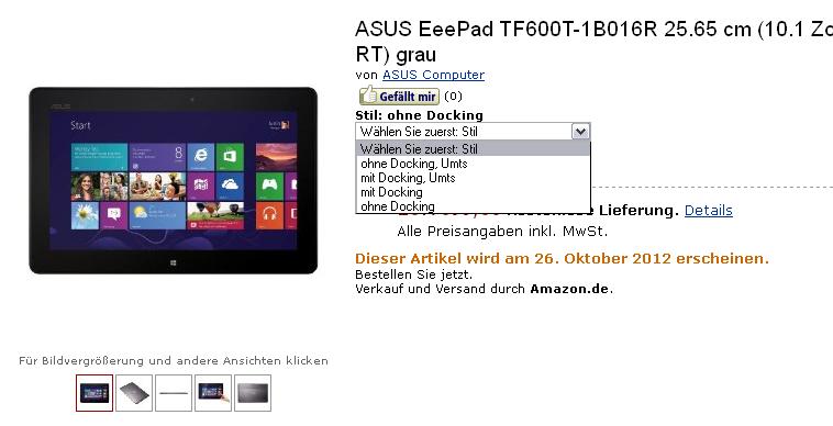 ASUS TF600 kostet bei digitec 799 Fr. ohne dock, mit kostet es 899 Fr. ist aber win8 RT
