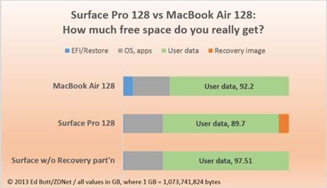 Unterm Strich gesagt: die anderen Anbieter haben genau das gleiche "Problem", und wenn man auf dem Surface noch die Recovery Partition löscht (was dann halt dazu führt, dass man nicht mehr so schnell den PC "refreshen" kann ohne die eigenen Files zu löschen), hat man gar mehr Platz!