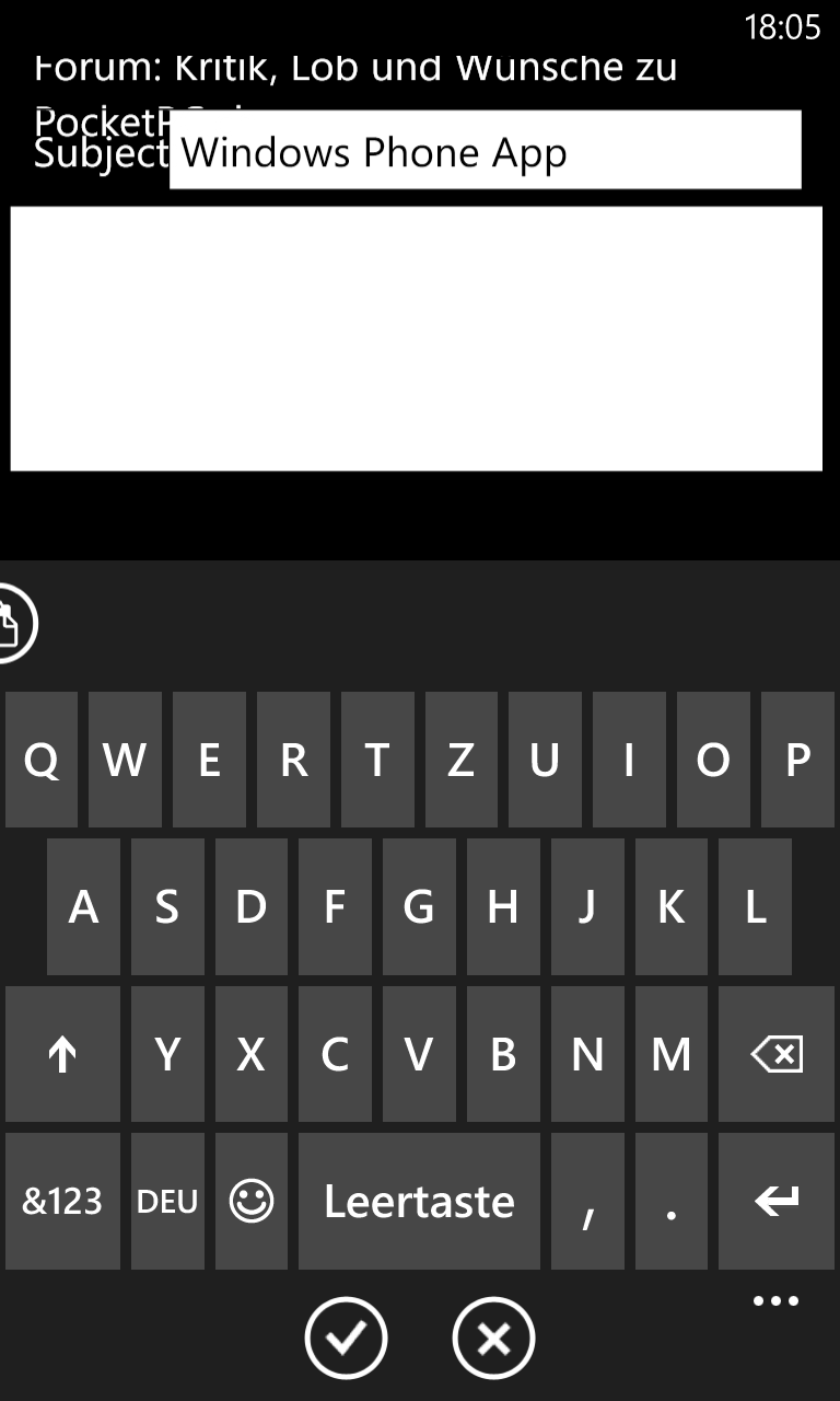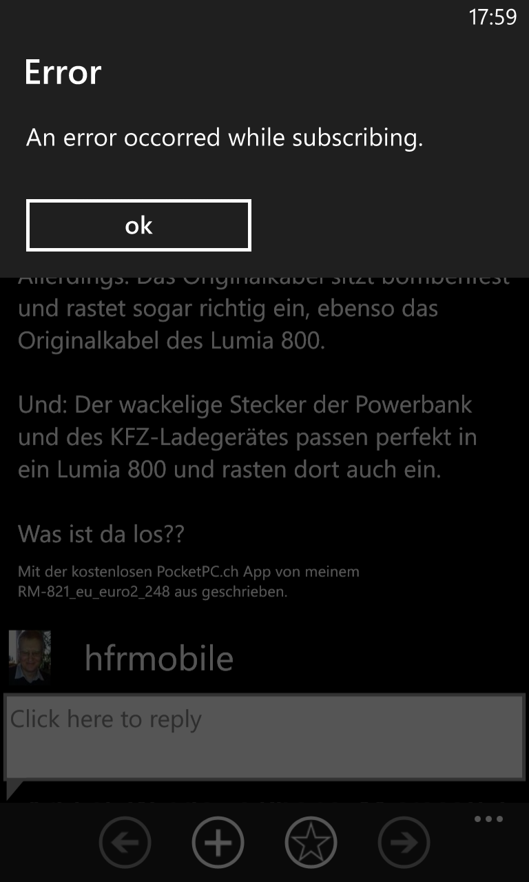 Wenn die PocketPC.ch App länger läuft, kann es sein, dass posten nicht funktioniert, aber keine Fehlermeldung erscheint und man so getippten Text verliert.