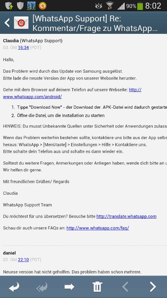 AW: Problem mit WhatsApp Sicherheitmeldung
