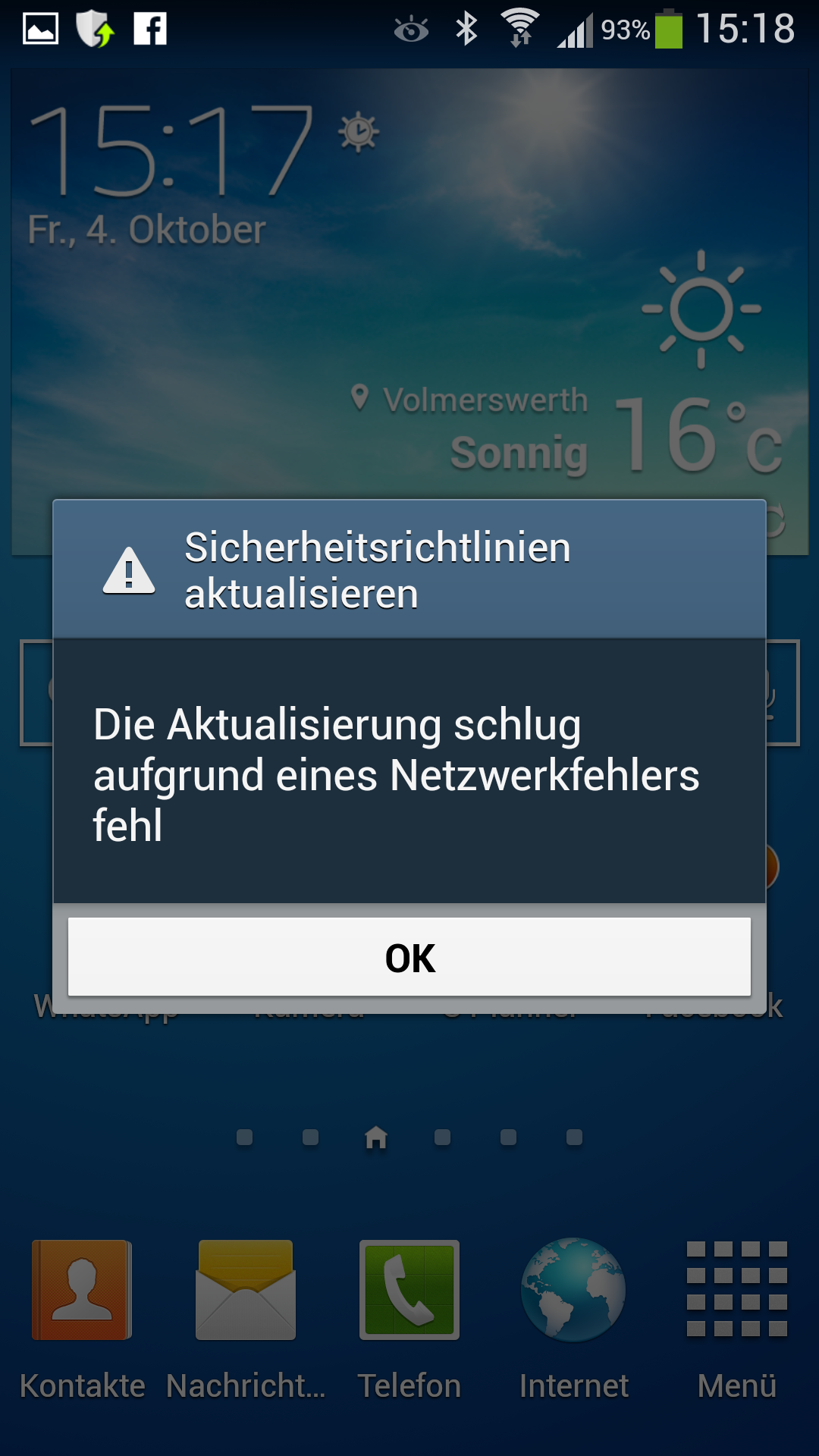 Problem mit WhatsApp Sicherheitmeldung