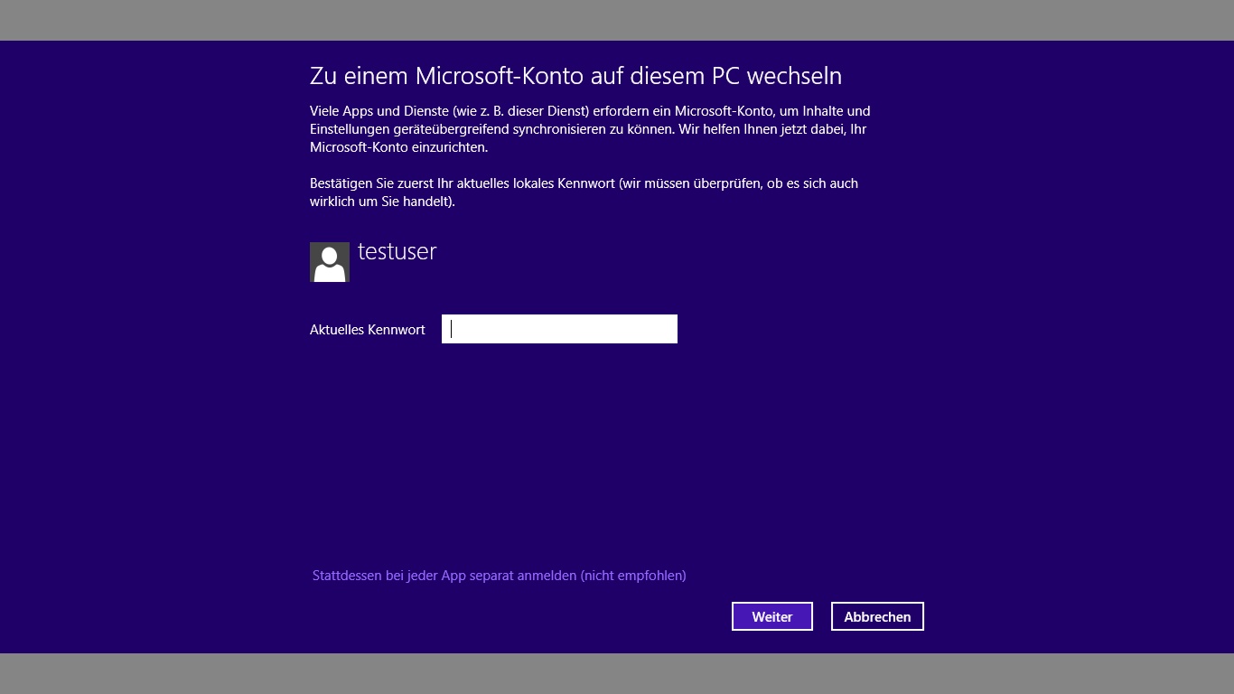 Wie gesagt, wichtig ist, dass du nicht das Passwort eingibst und auf weiter klickst sondern unten auf den Punkt mit dem separaten anmelden klickst.