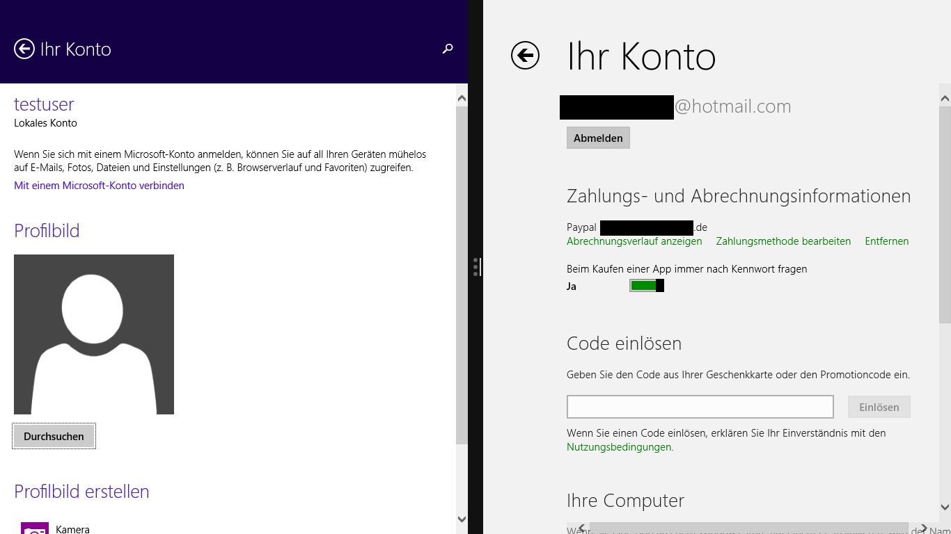 Wie du siehst, bin ich beim Store mit meinem Account angemeldet und in der Systemsteuerung immer noch als lokales Profil. Habe die Systemsteuerung auch erst nach der Anmeldung am Store geöffnet.