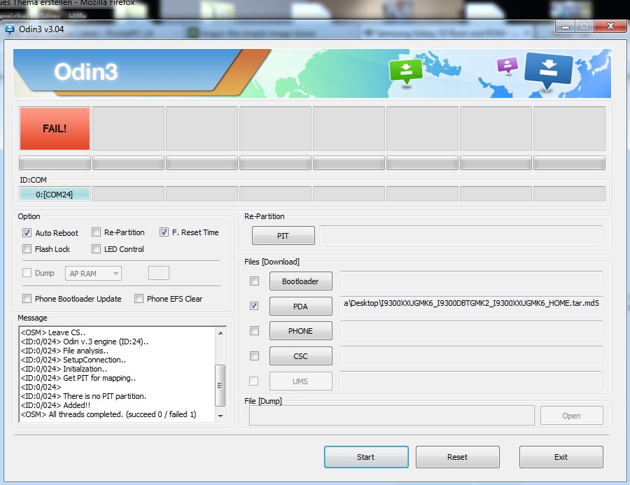 Hast du mal probiert mit PIT File zu Flashen und Repartition unbedingt anwählen???