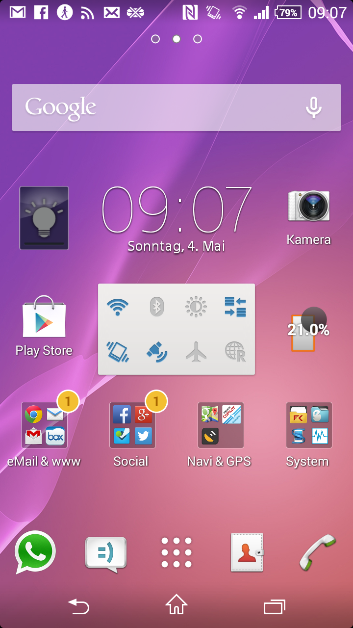 Gibt es eigentlich beim Z3 Compact noch das Widget für die Schnelleinstellungen WLAN, GPS und so weiter? Habe das bei meinem Z1 prominent auf dem Homescreen, wäre schade wenn ich das im Z3C nicht mehr vorfinden würde...