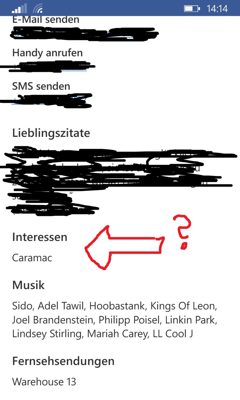 Caramac gibt's (klar) dort habe ich damals Gefällt mir geklickt, dann deklickt (so ist es auch weiterhin). Wieso auch immer ist dies aber unter Interessen (aber nur aufm Windows Phone sichtbar).