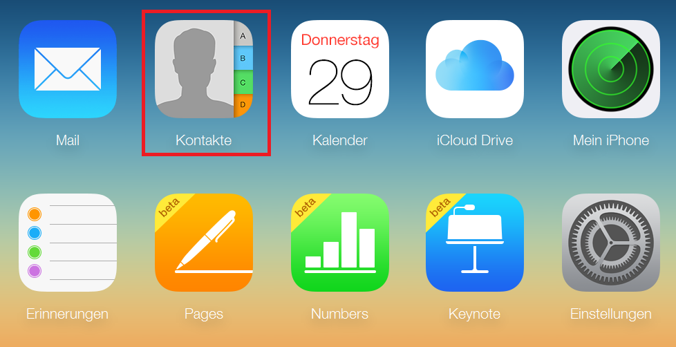 Schritt 3: Klickt auf das "Kontakte" Symbol