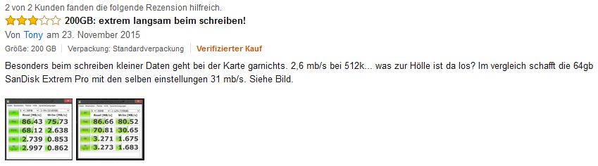 Da steht halt bei der 200 GB nichts dabei von der Schreibgeschwindichkeit.