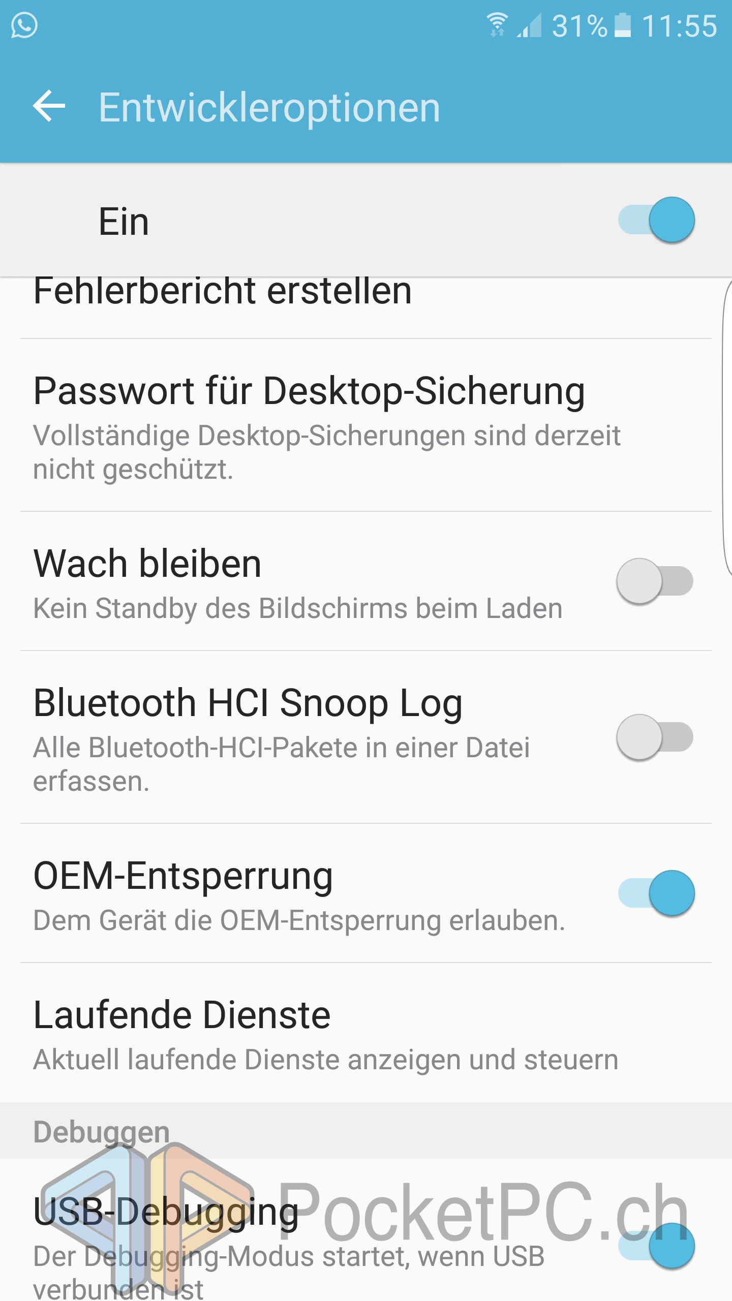 - Aktivierte OEM Entsperrung: Dazu müsst Ihr erst mal die Entwickleroptionen freischalten. Dies geschieht in dem Ihr unter Einstellungen/Geräteinformationen 7x auf Buildnummer tippt, wenn die Anzeige "Entwickleroptionen freigeschaltet" erscheint, findet Ihr diese in den Einstellungen über "Geräteinformationen". Hier könnt Ihr jetzt die OEM Entsperrung aktivieren.