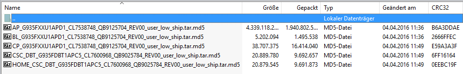- Die jeweilige Firmware aus dem >Firmware-Sammelthread< oder mit dem >SamFirm Download Tool< runterladern. Die entpackten Firmware Dateien sehen dann so aus: