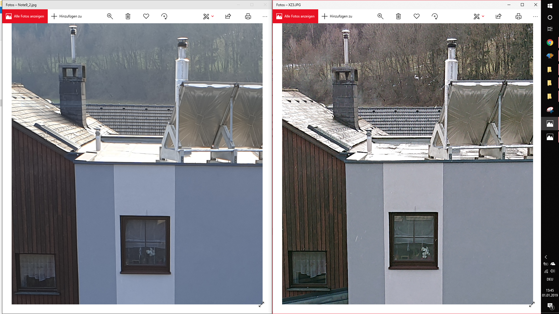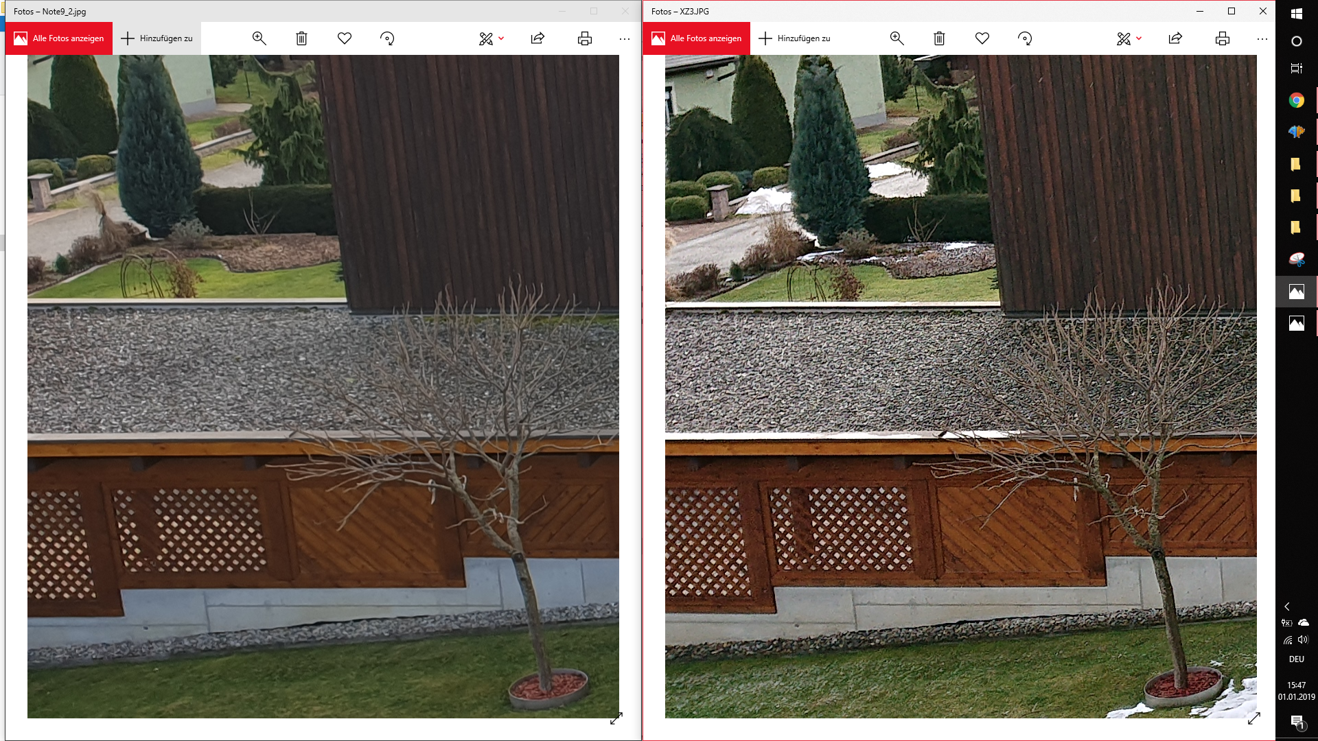 Hier die Originalfotos (links: Lumia 950XL, rechts: Note 9)