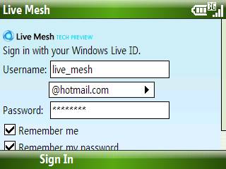 Hat man den LiveMesh Mobile Clienten installiert, muss man sich mit seiner LiveID anmelden: