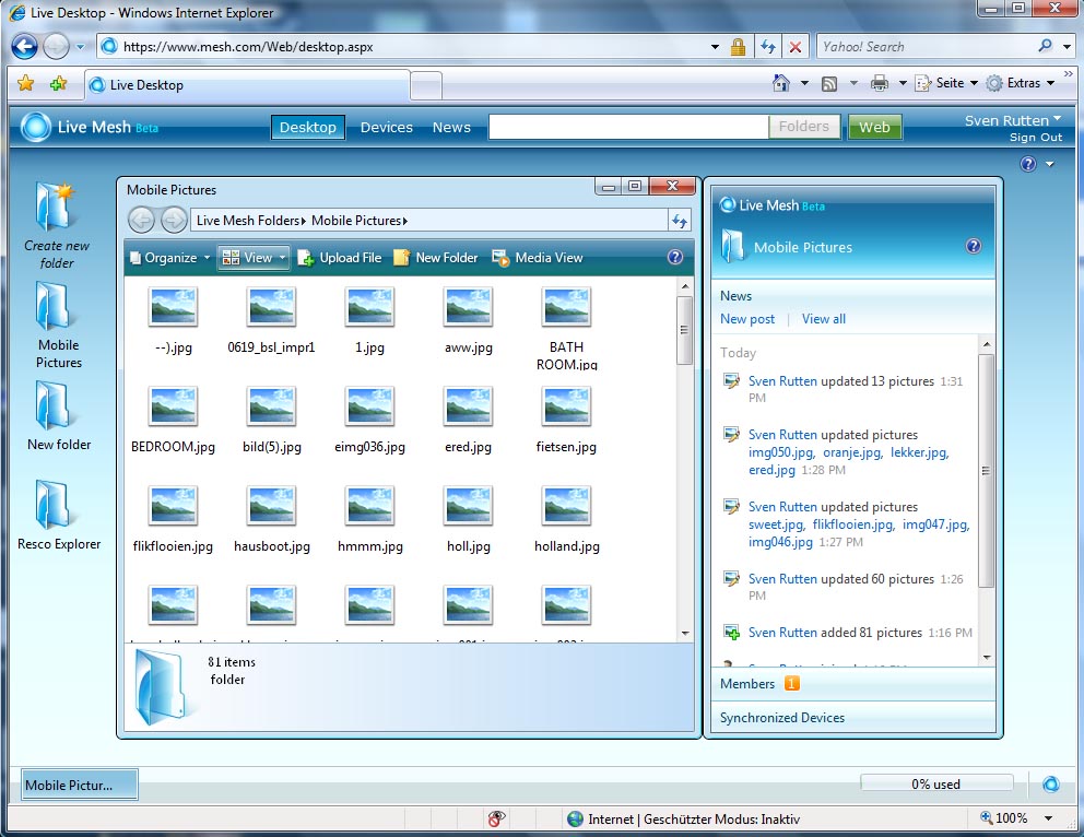 Dazu loggen wir uns jetzt in den "normalen" LiveMesh-Account auf dem PC ein, und sehen folgendes: