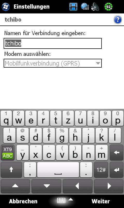 Name eingeben und Mobilfunkverbindung (GPRS) auswählen --> Weiter