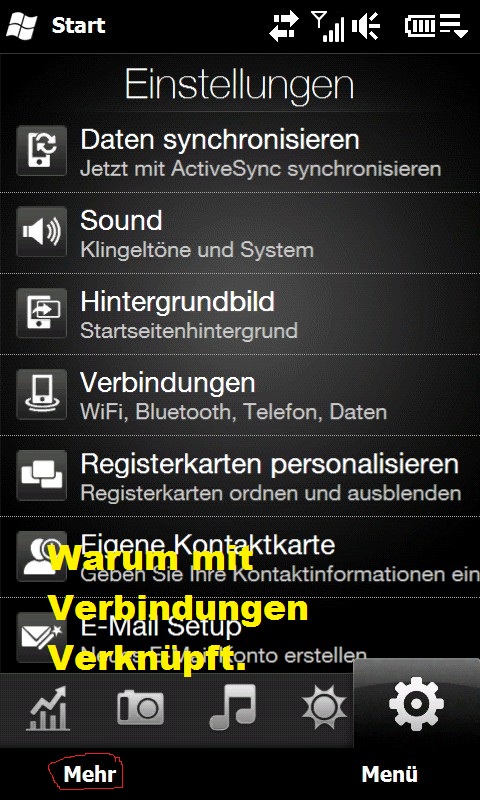 wirklich großes Kompliment, schön wär sicherlich noch ein Soft Reset Programm und das mit dem "mehr Button" in den Einstellungen ist schon etwas ärgerlich. Am besten wär eigentlich gleich eine Verlinkung des Einstellungen Tabs mit den Einstellungen von WinMob 6.5 is ja auch fingerfreundlich etc.
