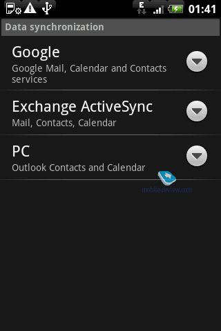 Das Bild sagt eigentlich alles :) Google, Microsoft Outlook und Microsoft Exchange können problemlos mit dem HTC Hero synchronisiert werden.