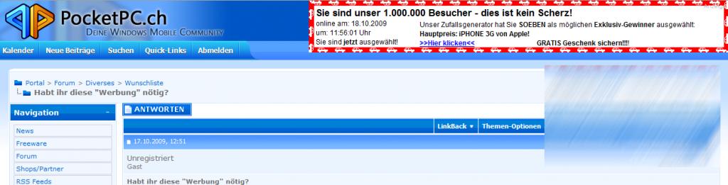 Außerdem war nach der dritten Werbung innerhalb drei Minuten echt die Lust an pocketpc.ch in Gefahr.
