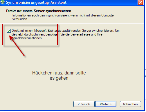 Du hast vermutlich Exchange Server ausgewählt, obwohl Du keinen hast,