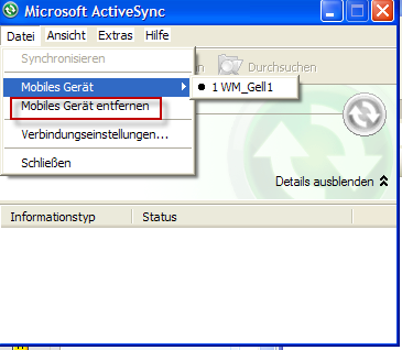 Ich habe zwar ActiveSync installiert, und per USB wird das Gerät auch gefunden, aber die Synchronisation läuft nicht. Stattdessen kommt dauernd: