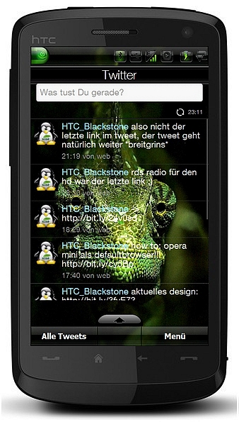 Ich habe auch einen Account den ich aber nur nutze um zu lesen was die Leute so schreiben (Fred Durst z.B.). Ich habe auf meinem G1 einen Twitterwidget was supi funzt und der Twittertab beim HD ist auch richtig gut. Nur leider benutzt in meinem Freundeskreis niemand (noch nicht) Twitter, weshalb ich eben eher Leser als Schreiber bin ;)