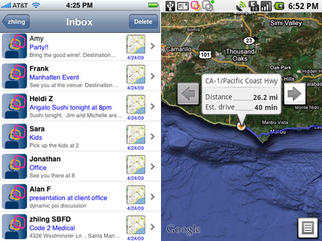 Vergessen Sie ausgedruckte Karten und Wegbeschreibungen, die Sie mühsam per Hand aufschreiben - jetzt gibt es zhiing. Geben Sie einfach eine Handynummer ein und klicken Sie auf "Senden". Ihr zhiing-Kontakt erhält nicht nur eine Textnachricht mit bis zu 25-mal mehr Zeichen als eine SMS, er bekommt eine dynamische Karte mit detaillierten Schritt-für-Schritt Anweisungen zu Ihnen oder einen Punkt, wo Sie Ihn treffen möchten.