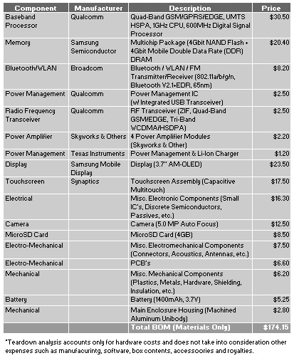 Hier eine Tabelle von isuppli.com (Englisch) , die die einzelnen Kosten zusammen trägt.