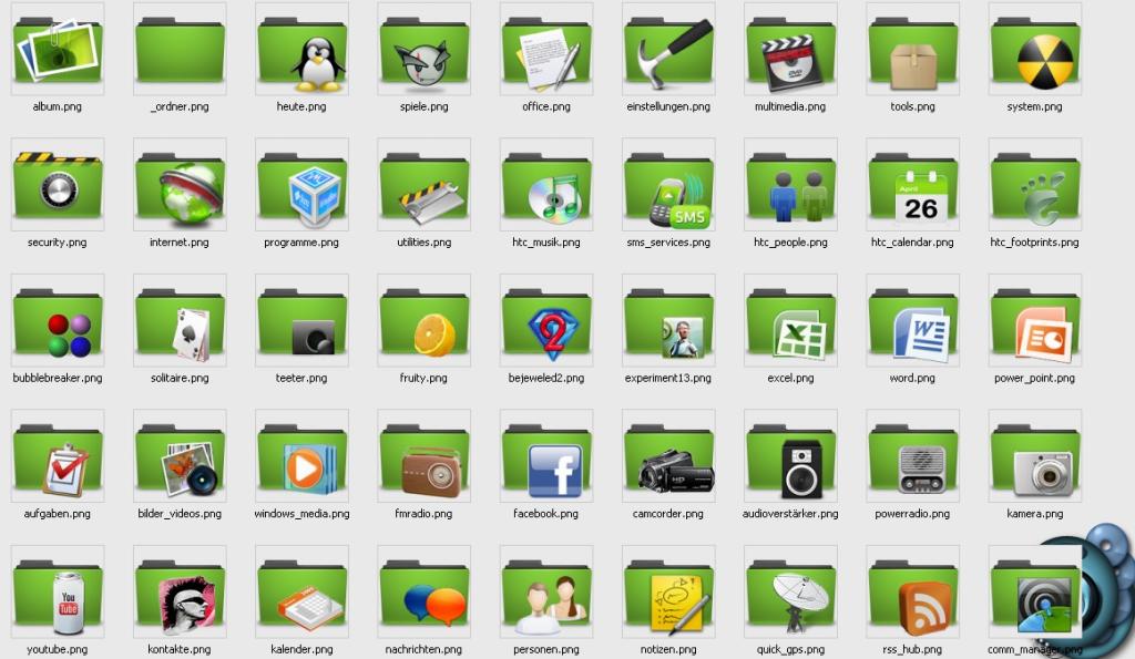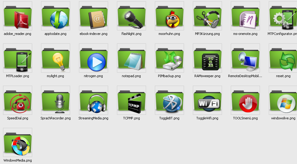 Sehr hübsche Icons... aber Du machst Dir auch für die Starticons der einzelnen Programme Icons im Folder-Look?! Ist das nicht verwirrend?