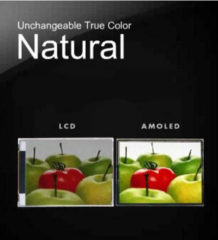 AMOLED bedeutet Active Matrix OLED (Organic Light-Edmitting Diod). Die einzelnen Pixel (Bildpunkte) werden dabei über eine aktive Matrix gesteuert, wobei jeder Pixel über eine eigene Stromverbindung verfügt. Dadurch werden die Pixel zum leuchten gebracht. Da ein AMOLED-Display, anders als LCD-Displays, keine Hintergrundbeleuchtung braucht, verbessert sich der Kontrast erheblich.