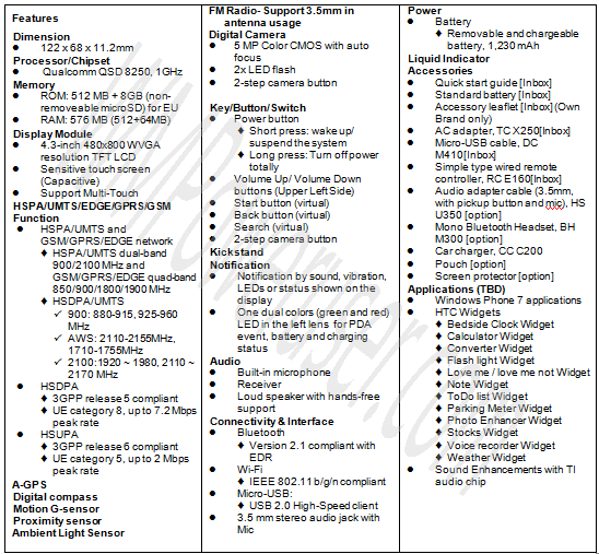 Inzwischen sind die genauen Specs öffentlich geworden: http://wmpoweruser.com/exclusive-htc...a-aws-support/