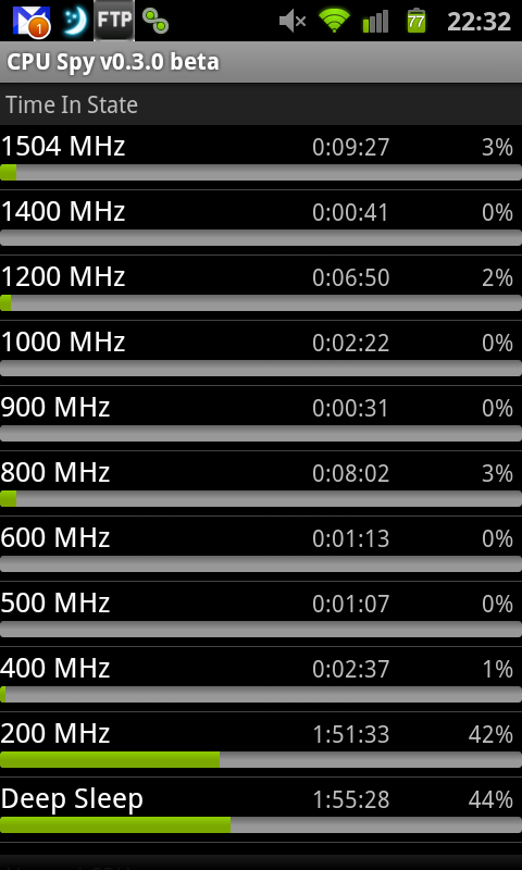 smartass-Govenor – aus dem LeeDroid-Forum: “Smartass governor: based on the concept of the “interactive governor” but a little more responsive, Smartass will also cap the clock speed at a minimum whilst the screen is off thus eliminating the need for “sleep profiles”.” – d.h. wenn man diesen Govenor einstellt muss man nicht einmal mehr ein Profil für deaktivierten Screen einstellen, da dann die CPU ohnehin nur mit Minimaltakt läuft.