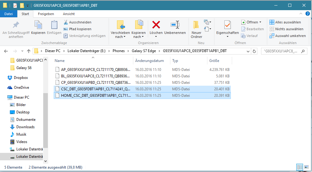 - Die jeweilige Firmware aus dem >Firmware-Sammelthread< oder mit dem >SamFirm Download Tool< runterladern. Die entpackten Firmware Dateien sehen dann so aus: