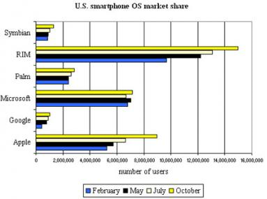 Denn noch im ersten Halbjahr diesen Jahres (2009) lag Windows Mobile stark vor Apples iPhone, dies hat sich nun aber geändert. Microsoft liegt derzeit hinter Blackberry und iPhone auf Platz drei der Smartphone-Betriebsysteme in den USA.