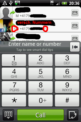 a) Ja, ganz normaler Dialer EDIT: Ganz normaler Dialer von HTC Sense, der Stock-Android-Dialer sieht glaube ich nochmals ein bisschen anders aus.