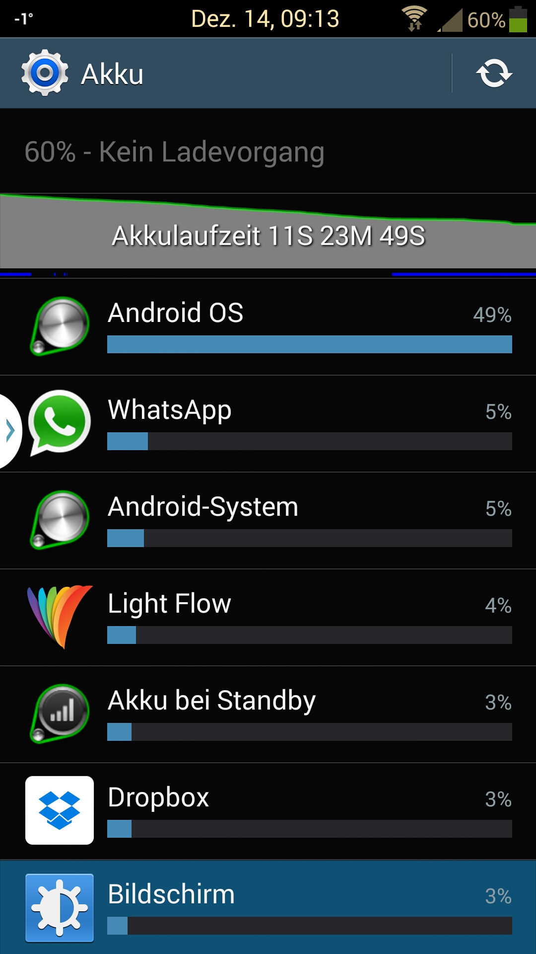 -> dann den Akkuverbrauch bemerkt und die ScreenShots gemacht.