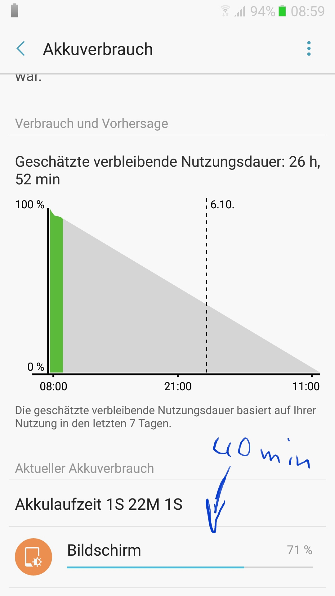 Ich meine auch, dass das (neue) Note 7 mit der aktuellen Firmware PI7 zwar besser ist, als das "alte" Note 7 mit der Vorgänger-Firmware. Aber an das S7 edge oder an vorherige Note-Modelle kommt es leider nicht heran. Ich war bspw. beim Note 4 oder Note 5 nicht selten bei gut über 3 Tagen Laufzeit (mit Wenignutzung mit ca. 3 Stunden Gesamt-Display-On). Beim Note 7 schaffe ich max. knapp über 2 Tage ...