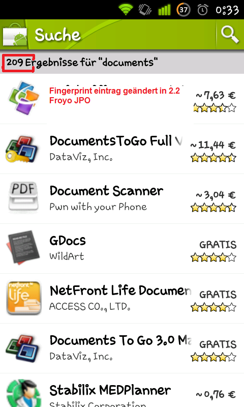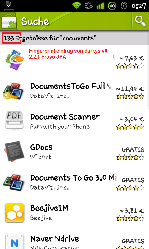 Hi ich hab gestern ausversehen mein handy etwas zerschossen und musste neu flashen, dann hab ich mir gedacht ich teste mal die market suche mit unterschiedlichen