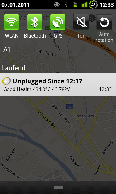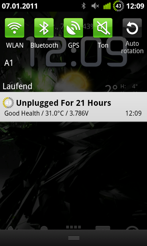 übrigens alle applikationen sind an! dazu bluetooth, wlan, gps, usw....