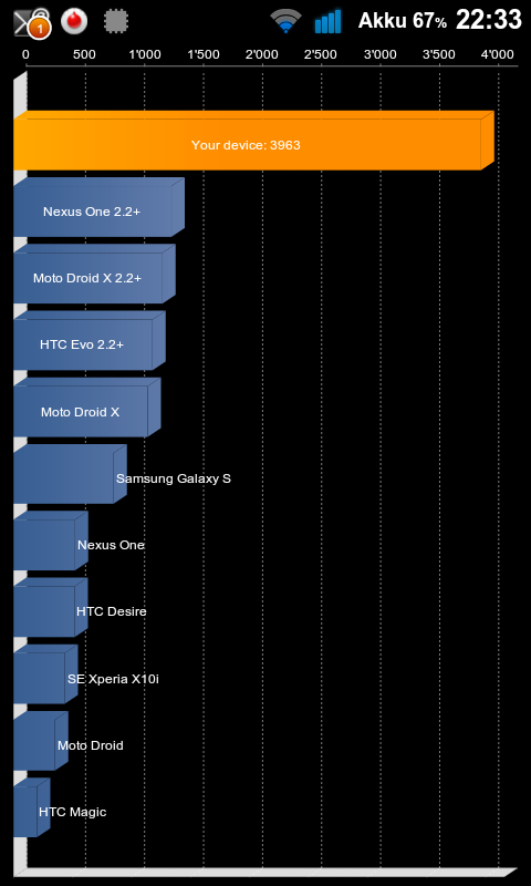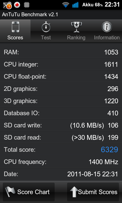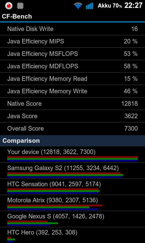 Hier mal die Benchmarks mit dem 1.0 Kernel und dem dazugehörigen Thunderbold ROM